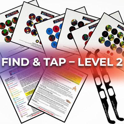 The PuzzleArt Therapy™ System is a colorful and fun Functional Skills Development Program that helps improve academic and readiness skills that are so important for reading, writing and daily life. Perceptual, sensory and visual based, PuzzleArt™ FIND & TAP isual motor, visual memory, oculomotor, directionality, tracking, peripheral vision, motor skills, sensory integration, figure/ground, near/far, stereopsis, thinking and creative problem solving skills and more can be easily worked on.